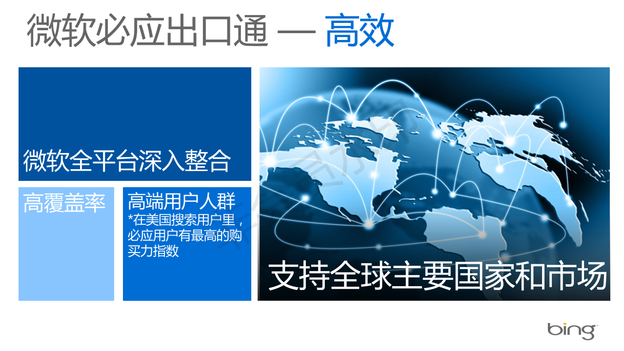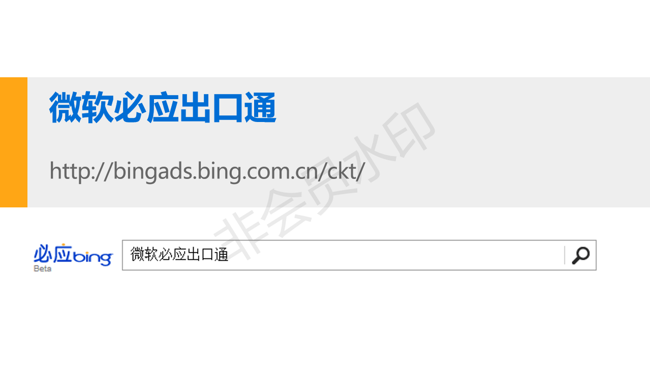 必应广告(微软广告)是以基于必应的搜索广告为核心的微软全球化网络营销服务,旨在帮助中国出口型企业以一种低门槛的推广方式面向全球高质用户推广自己的品牌和产品。