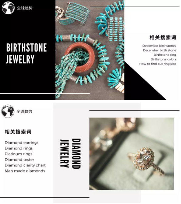 以上是我们分享的关于珠宝的子品类,其中像Emma Stone的订婚戒指,就是一款爆品,建议大家可以设置类似“Emma Stone engagement ring” 或“pearl engagement ring”等关键词。