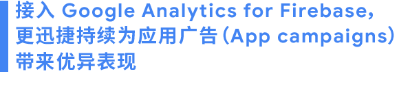 最快提速一倍机器学习时间,现通过 GA4F 对您应用广告的目标事件出价,能以标准化的数据归因模型,实现对潜在用户更精准的预测和覆盖,进而稳步提升获量水准。自动“投喂”分析数据,GA4F 赋能 App campaigns 更快更准确识别最有可能下载安装、持续与应用深化互动的高质量用户。目前来看,已接入 GA4F SDK 的应用广告系列,相较于未接入的,所带来的下载转化高出 5%。还不快把免费又轻量级的 GA4F 接入您的 Google Ads?参考教程,或详询您的客户经理。