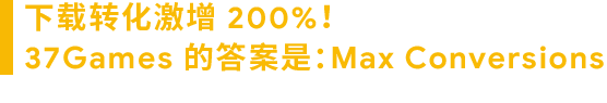 面对竞争激烈的移动市场,关注培养用户长期价值的同时,迅速起量才能抢得先手。由于 LTV (用户生命周期价值) 较短,因此 37Games 希望在游戏发布后,能立即最大化转化效果,便启用了“Max Conversions”应用广告系列——顾名思义,在预算内通过自动出价实现下载量的最大化——遵循客户经理的最佳实践建议,其下载安装量激增 200%。