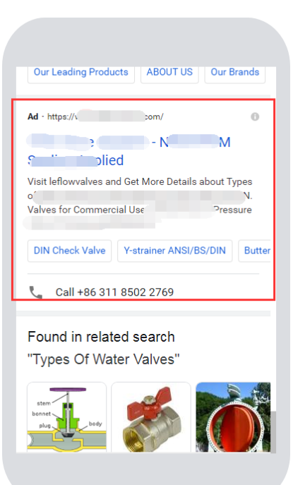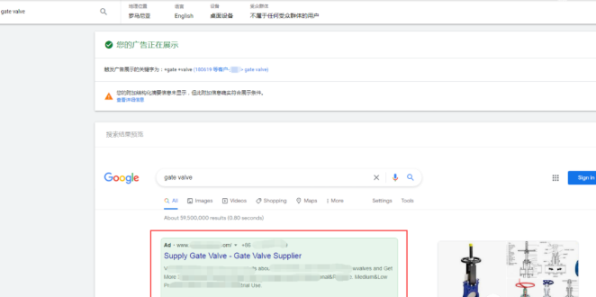 当我们的附加图片在Google搜索结果页上展示时,潜在客户会看到以下内容:广告标题、广告内容描述、网址、图片。