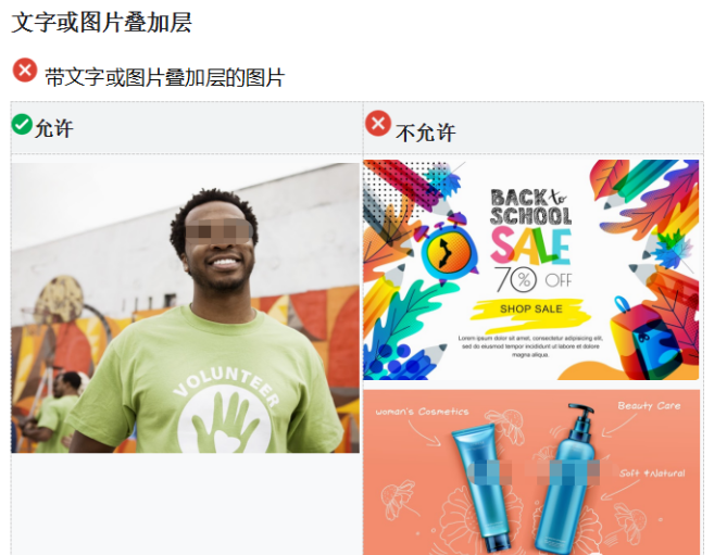 不允许出现以下情况: 图片与同一广告中的其他图片完全相同或者非常相似,只有细微的差别。