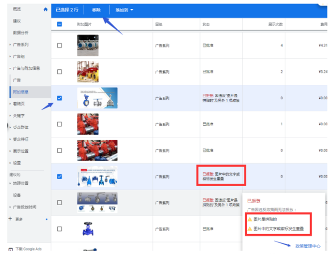 PS:创建完附加图片后,注意是否有图片显示已拒登,移除或添加新图片即可,有任何疑问可点击政策管理中心查看详情。