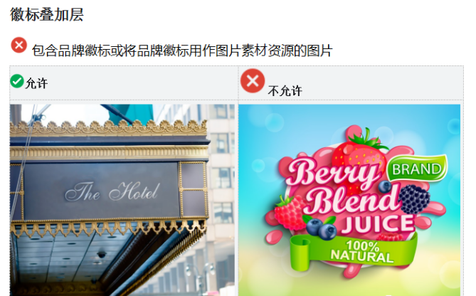 不允许出现以下情况: 图片中的徽标叠加显示在原摄影图片之上。