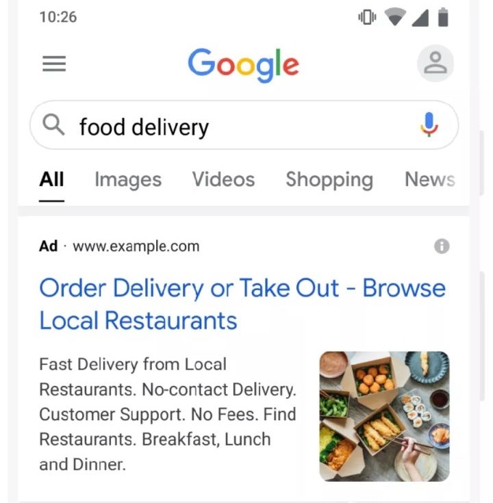 当您选择启用动态图片附加信息后,Google Ads就会从您的着陆页中识别并提取相应图片。我们的系统会从您的着陆页中选择与查询最相关的图片(基于广告的着陆页)。从最终到达网址中选择的图片会先经历一系列自动和人工的质量检查,然后才能获选投放。用户在点击动态图片附加信息后,便会转到与广告标题相同的着陆页中。