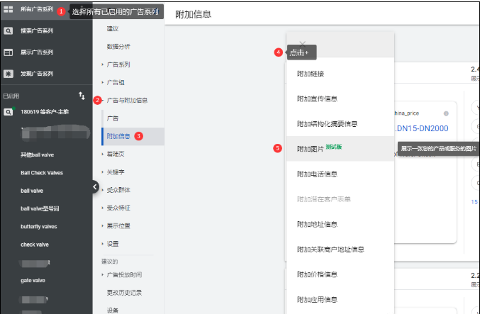 那都在做谷歌广告,我们如何在众多同行中脱颖而出呢?这也成为了企业运营人员研究的一大课题。接下来我就具体介绍一下提升谷歌广告效果又一大利器,也是今天的主人公—附加图片,属于附加信息里面的一种形式,其中包括2种新功能:附加图片功能和动态图片附加信息。纯文字的基础上添加的产品图片,新颖的广告形式立马脱颖而出,客户得到了只靠文字看不到的额外信息,不仅提升了客户的感官同时也提升了广告的点击率,也会为后期采购商加印象分哦。